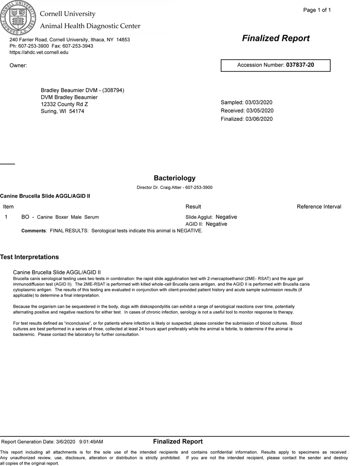 Bo has his AKC CGC title. He is fully health tested for everything the Boxer Breed Club recommends, includihng thyroid panel.