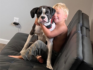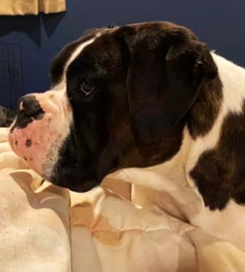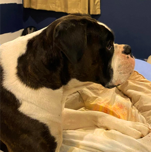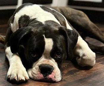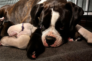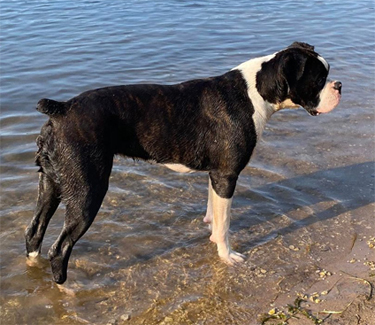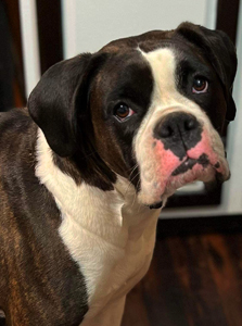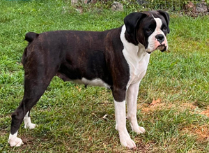Storm is a favorite of everyone who meets her, nothing but love and affection. She lacks the puppy excitement that so many boxers exude, she doesn't even kidney bean dance. She snuggles and demands your love. She was the first pup born to our remodeled health testing breeding program. Born from Sunshine, by Bo.